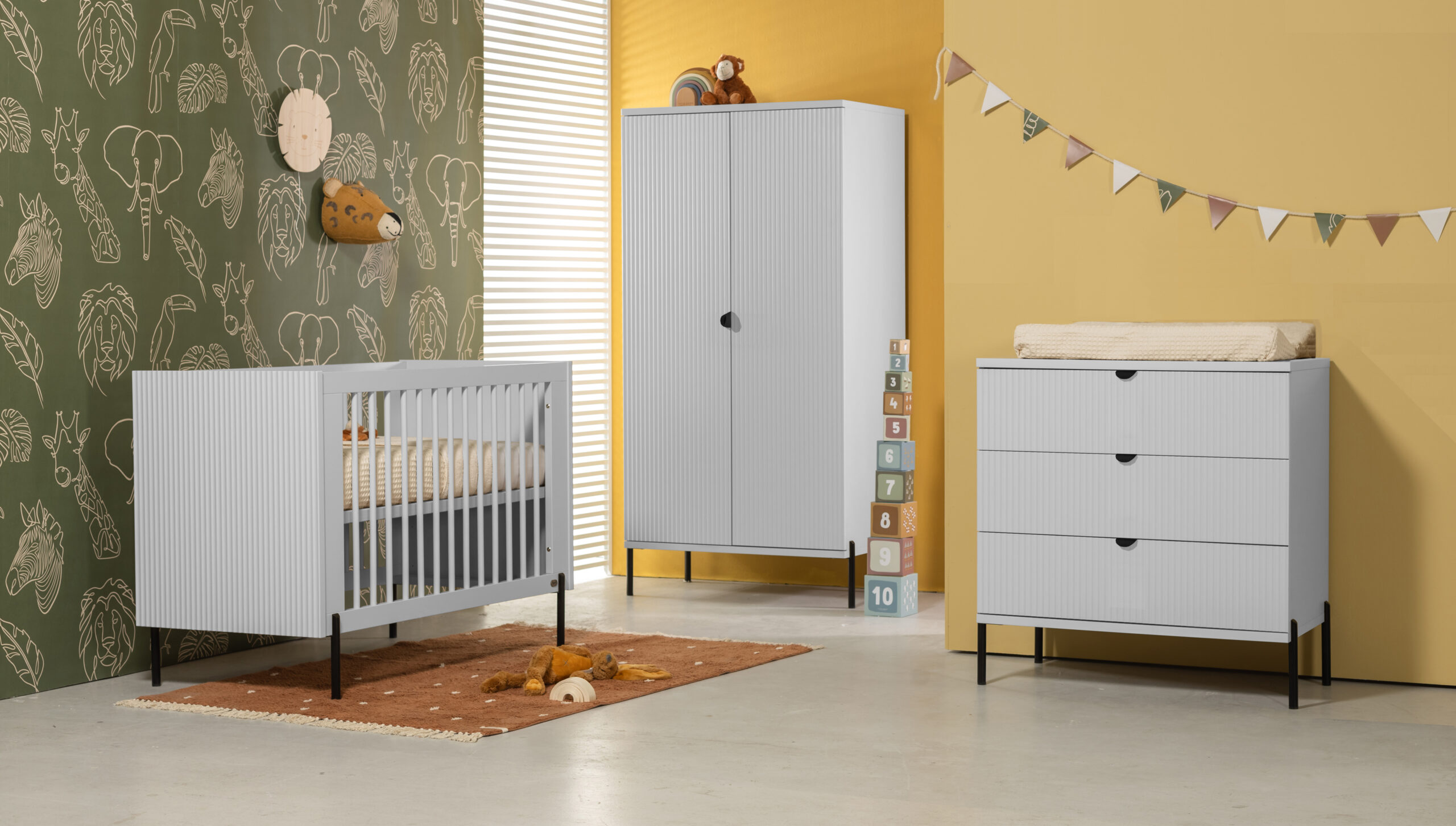 The Waves chest of drawers brings a touch of coastal charm to your nursery with its clean lines, modern metal legs, and elegant white finish. Inspired by the serene beauty of the beach, its gently wavy ends echo the shape of rolling waves, adding a unique design detail. Built to last, it features three spacious full-length drawers and a detachable changing top that can be removed when no longer needed. With fully extendable drawers on soft-close runners, the Waves chest offers safe, silent storage while doubling as a convenient changing station during your baby’s early years.